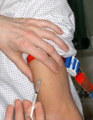 Bei der Allergie-Impfung (Hyposensibilisierung / Immuntherapie) erhält der Patient in regelmäßigen Abständen Injektionen mit dem allergieauslösenden Stoff (z.B. einem Birkenpollenextrakt). So kann sich der Körper nach und nach an das Allergen gewöhnen. Die Injektionen erfolgen immer in die Oberarmaußenseite.